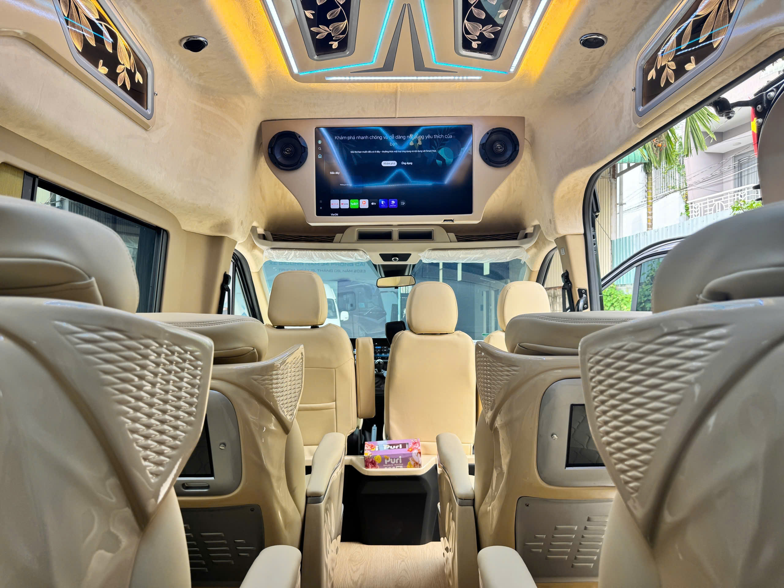 Sở hữu nhiều nhiều tính năng hấp dẫn như mẫu ghế hạng nhất tiện nghi tạo cảm giác thoải mái cho người dùng, cửa lùa được thiết kế mở rộng; bên cạnh đó là 03 băng ghế chỉnh điện có rãnh trượt giúp hành khách dễ dàng điều chỉnh tư thế phù hợp, kết hợp với đó là các tính năng như quạt thông gió làm mát lưng ghế, bàn rượu trung tâm, ghế nghịch, 2 bàn cá nhân ghế VIP. Xét về nội thất, xe sở hữu vách la phong được trang trí bầu trời đầy sao ấn tượng, giúp khách hàng cảm giác như được bước vào một thế giới khác khi ngồi trên xe. Thiết kế giả gỗ cũng được áp dụng vào thanh gác tay, cũng buồng tài xế để tạo cảm giác sang trọng.